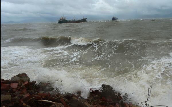 福建启动防台风Ⅰ级应急响应这是在福清东壁岛海域,乌云密布、风急浪大(9月14日摄)。