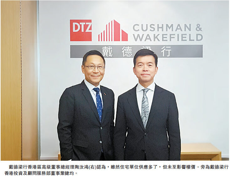 戴德梁行香港區高級董事總經理陶汝鴻昨日於記者會上表示,本港樓市於今年第二季起回暖,其中上月全港物業臨時買賣合約便達到7648宗,分別按年及按季增加約40%及38%,同時數字進一步逼近去年7月樓市走下坡前的水平。由於市場成交個案持續增加,他相信將有助帶動樓價回復穩定,估計第四季中小型住宅售價將再錄6%升幅,表現跑贏僅錄3%升幅的豪宅物業,全年計整體物業售價則較年初水平回升約10%。
