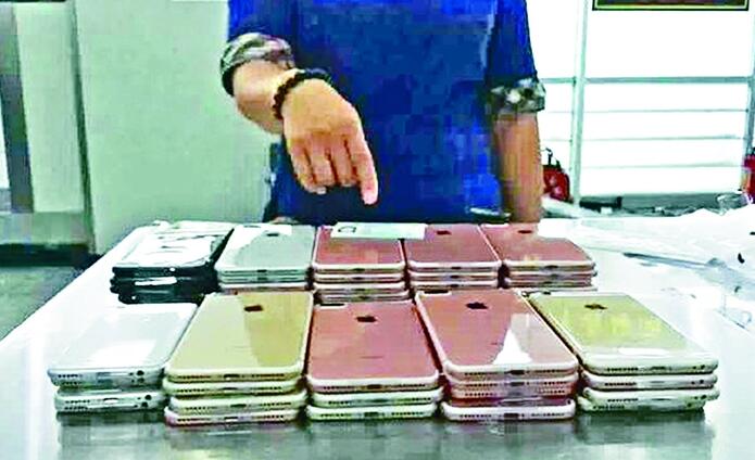 遭截获的水货客腰绑有多部iphone,企图瞒骗执法人员过关