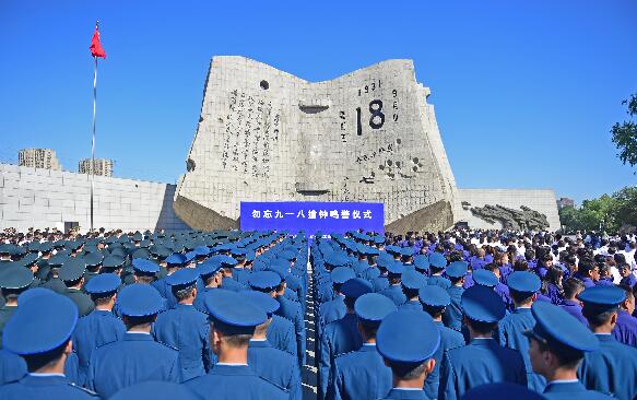 9时18分,渖阳上空拉响了时长3分钟的防空警报,市区主要街路的车辆一律停驶 笛,行人肃立。用钟声和警报声来警醒民众勿忘国耻,振兴中华。