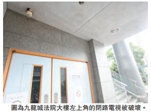 昨晨约7时许,法院大楼一名姓周(59岁)保安员,从保安室闭路电视发现一名老翁在法院外徘徊,其後在职员通道门口打开一张摺及站上摺凳,伸手拆下通道门口顶一部闭路电视(CCTV)的镜头,期间发出声响。