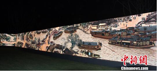 圖為夜晚的3D動態版《清明上河圖》。 蔣青琳 攝