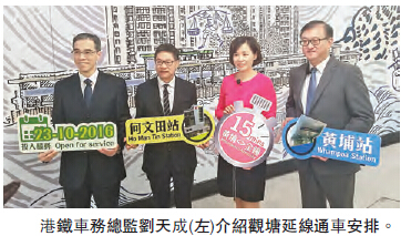 歷時5年、全長2.6公里的觀塘延線工程即將完成所有測試程序,將於下月23日正式通車。港鐵車務總監劉天成表示,由今年4月開始,何文田站及黃埔站已開始進行車站設施、設備的測試,當中2個站合共120對月臺幕門需進行逾55萬次的開關測試。又指,已進行了跨政府部門大型聯合演習,在上月亦聯同消防部門、警方進行演習。而由上月21日起,觀塘線列車已按正常的班次時間表駛入黃埔及何文田站進行測試,以確保運作安全暢順。