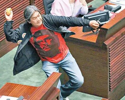 是次惊险入选的长毛梁国雄经常在议事厅掟物搞事。