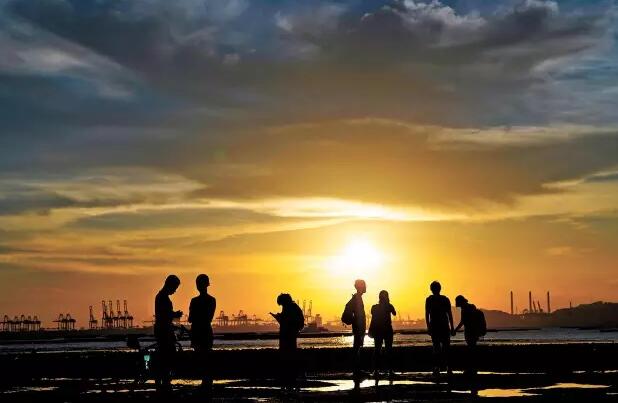 下白泥的独特美景,远处是日落深圳蛇口港。