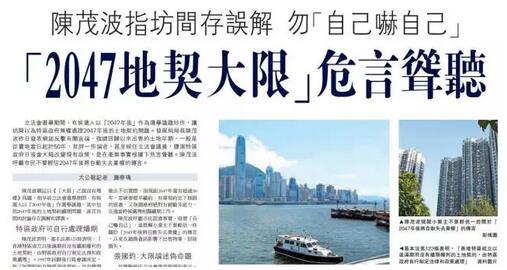 针对香港社会近日盛传“2047年后将自动失去业权”之说,陈茂波昨日发表网志严正澄清,“大限”之说完全没有理据。他批评一些论者甚至候任立法会议员,在毫无事实根据情况下“危言耸听”,臆测特区政府日后会根本地大幅改变现有政策,实在“莫名其妙”。