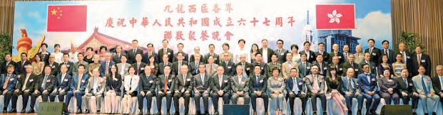 【香港商報網訊】記者謝巧玲報道:九龍西區各界慶祝中華人民共和國成立67周年國慶聯歡晚宴日前晚假龍堡國際賓館隆重舉行,行政長官梁振英、中聯辦九龍工作部部長何靖等蒞臨主禮,九龍西各界嘉賓、友好逾600多人歡聚一堂,共賀國慶盛典。