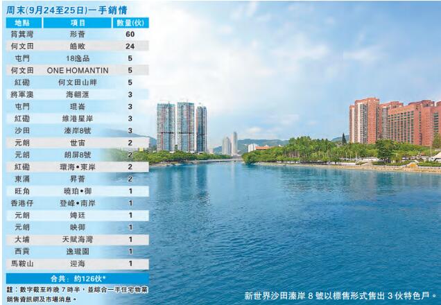 事实上,新盘销售势头强劲,即使上周末仅余新盘尾货开售,惟市场消息显示,两日市场仍录约126宗买卖个案,当中新地(016)旗下筲箕湾「形荟」延续早前强势,周六开售60伙旋即沽清,为发展商套现约5.5亿元之余,亦令项目至今累售伙数增至268伙。