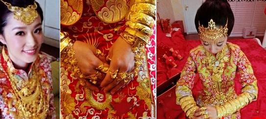挂满黄金饰品的富家新娘。