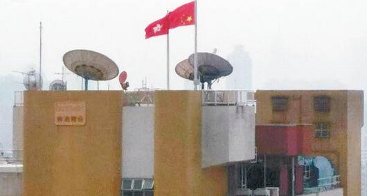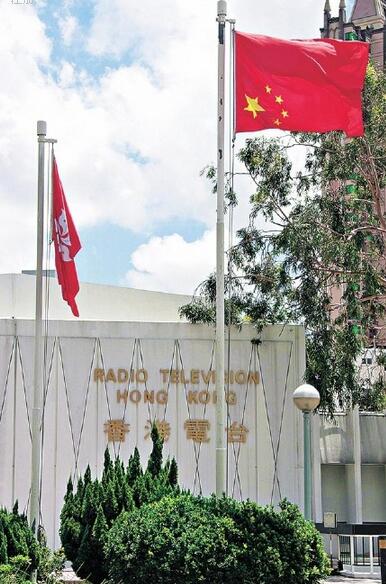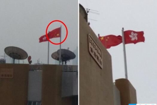 香港电台倒挂五星红。 随后,五星红旗被重新挂正