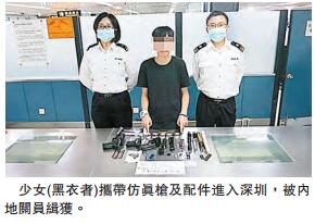张女上周三携带一个购物袋经罗湖口岸前往深圳时,被内地关员察觉购物袋看似沉重而抽查,当场起获大批仿真枪配件,包括枪管、弹簧等共32件,以及数盒共1500粒铅弹,即时拘捕张女扣查。根据相关条例规定,各种武器、仿真武器、弹药及爆炸物品,均属於禁止进境物品;情节严重者更可能被追究刑事责任,而教唆未成年人违法犯罪,同样要追究相应的法律责任。