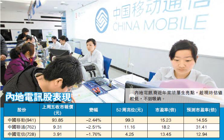 【香港商報網】科技發展一日千里,尤其在移動通訊方面,由普通手機到智能手機,都只是短短數年的時間。網絡數據發展迅速,也引伸網絡金融如移動支付等工具的衍生,但同時亦增加手機網絡的罪案,令內地當局近日加強支付結算管理,預料加強監管及補貼電訊商。另一方面,內地電訊商近年業績屢生亮點,趁現時估值較低,不妨吸納。當中推介有,中國移動(941)、中國聯通(762)和中國電信(728)。香港商報記者 譚之穎
