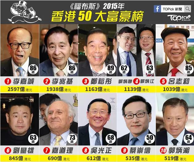 2015年香港富豪最新排行榜郑裕彤排名第3