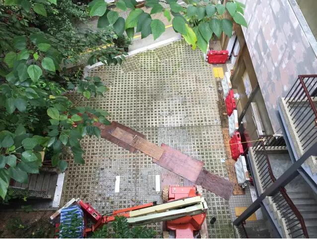 蓝屋建筑群毗邻空地原有三幢建于上世纪30年代初的住宅,及后拆卸并丢空至今。复修工程保留建筑群内的三棵树,并将空地作为小区内公共空间加以营造,如作为露天电影放映地。