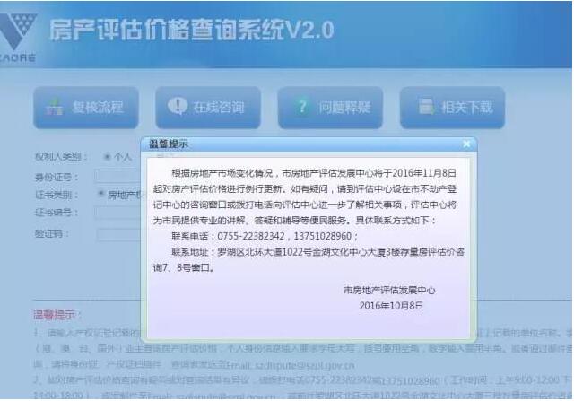 深圳市房地產評估發展中心今日發布公告:根據房地產市場變化情況,將于2016年11月8日起對房產評估價格進行例行更新。