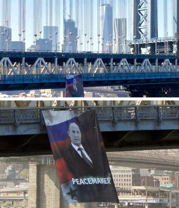 《纽约邮报》报道称,美国纽约曼哈顿大桥周四(6日)出现了一张印有俄罗斯总统普京图像的巨型海报,纽约市警方正在对此展开调查。