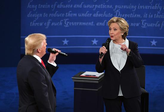 【香港商報網訊】當地時間9日,美國總統候選人舉行第二場電視辯論。民主黨的希拉莉與共和黨的特朗普在火藥味兒濃厚的辯論中展開互相攻擊,焦點放在特朗普被揭多年前侮辱女性的言論。英國《金融時報》評論稱,特朗普在此次辯論中重新找回了一些立足之地,表現比上次更有條不紊。據CNN民調,在候選人表現是否較預期好的問題上,63%受訪者認為特朗普表現較想像中好,遠高於希拉莉的39%。
