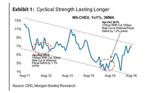 因認為中國政府財政支持會帶來周期性增長勢頭,且外部需求更強勁,摩根士丹利上調中國經濟的預期增速,其對中國經濟的預測顯得比其他華爾街機構和IMF都樂觀。