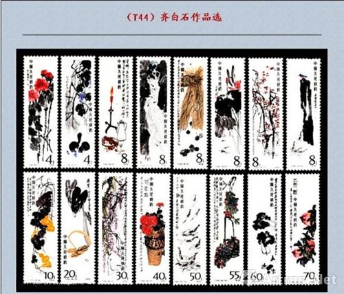 齊白石作品郵票(上排左起第四枚為《蛙聲十裏出山泉》)
