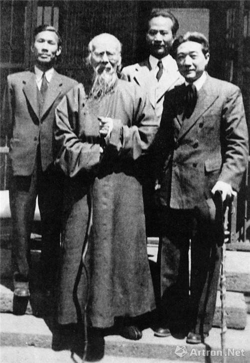 齊白石(前排左一)、徐悲鴻(前排左二)、吳作人(後排右二)、李樺(後排左一)合影