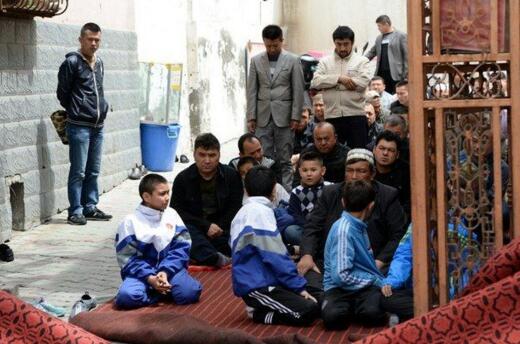 2014年5月23日,在新疆烏魯木齊的一個清真寺內,幾個孩童與成年人一起祈禱。(資料圖)