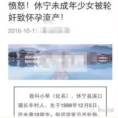 網傳信息顯示,休寧縣溪口鎮長豐村一名18歲女孩兒,從2015年5月至2016年1月,先后被該村村民汪某、朱某、汪某(實為王某)等3名男子強奸。