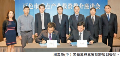 【香港商報網訊】記者于寧寧報道:百色市重點產業投資推介座談會昨日在灣仔麗都酒店舉行。永富亞洲集團有限公司分別與百色市商務局、百色市投資促進局就百色(香港)永富跨境電子商務物流園項目和百色(香港)永富邊貿食品加工項目簽約,總投資額達6億元人民幣。