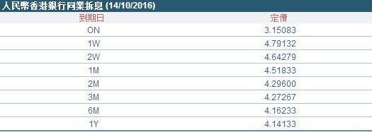 除此之外,1周期離岸人民幣Hibor上升15個基點至4.79%,1個月期Hibor上升14個基點至4.52%,1年期Hibor基本維持前值不變,報4.14%。