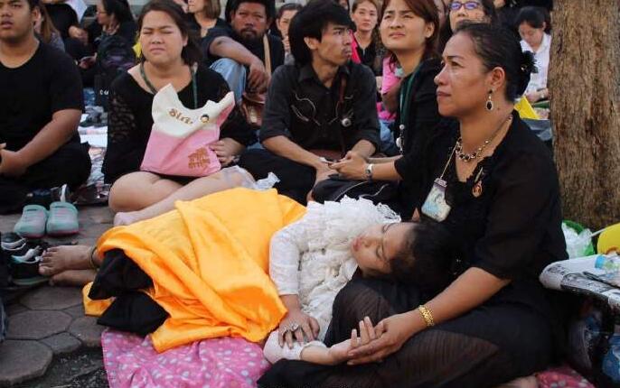 據泰國頭條新聞報道,10月14日上午10點,曼谷詩力叻醫院已經有大批民眾聚集在醫院送別國王,其中大部分人從昨晚開始便一直在守在醫院,沒有離去。記者采訪到了兩位民眾,他們表示:“從昨天看到新聞發布會,知道國王去世的事情 ,我覺得非常傷心 ,傷心得不知道怎么辦了,連飯都吃不下,就馬上出門趕來詩力叻醫院。從昨天晚上八點到醫院就一直都在這里等。我一直都在關注國王的病情,以前國王住院時我都會來醫院為國王簽字祈福。我很愛國王,因為他為我們泰國人民做了很多事情。”