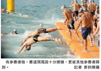 曾参与里约奥运会的香港泳队成员欧铠淳指,海上有暗涌及水流,而且水流比想像中急,在中段感到吃力。参加了「优悠组」的方先生及陈小姐指,海上水流湍急,而赛道上头尾和尾段十分挤拥,更被其他参赛者踢到,他们认为应分批让参赛者下水。