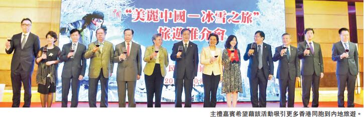 【香港商報网訊】記者吳愹玲報道:由國家旅游局主辦的「美麗中國冰雪之旅」大型宣傳推廣活動日前假香港海逸君綽酒店舉行,國家旅游局局長李金早、中聯辦副主任仇鴻、全國人大常委會委員范徐麗泰、國家旅游局港澳臺司司長劉克智、香港旅游事務專員朱曼鈴等蒞臨主禮。國家旅游局代表介紹了黑龍江、吉林、遼寧、新疆及內蒙古的旅游景點和線路安排,期待為大家帶來冰雪體驗。