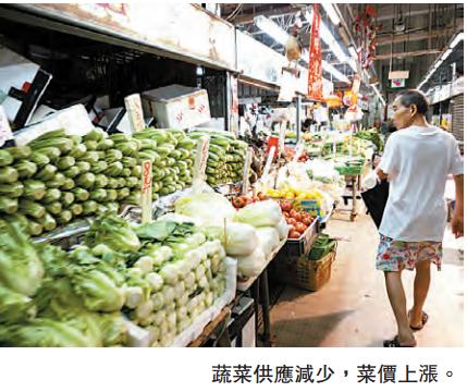 香港蔬菜同業聯會會長黃祥漢表示,由於天氣不穩,廣東蔬菜來貨量已減少三成,價格亦升了一成,而廣東來貨佔香港入口菜一半,葉菜類如菜心、白菜等的菜葉被打爛了就不能進食,估計未來菜價會再加價兩至三成,要最少20日後,來貨量穩定,價錢才會回落。