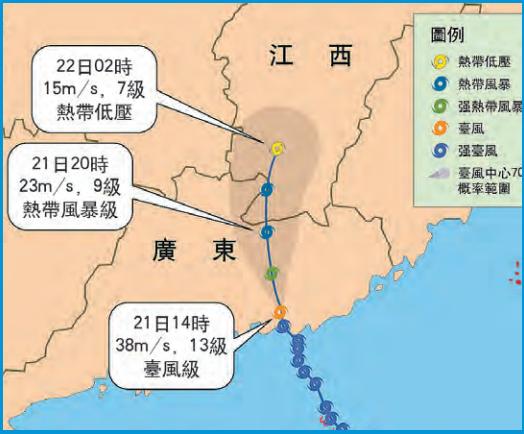 【香港商報网訊】記者盧偉報道:據廣東省氣象局最新消息,今年第22號台風「海馬」(強台風級)已於21日12:40在汕尾市門鎮沿海地區登陸,成為10月份登陸粵東最強台風。登陸時中心附近最大風力14級(42米/秒),廣東9市發布台風紅色預警。氣象台預計,「海馬」將以25公里左右的時速繼續向偏北方向移動,強度逐漸減弱,22日凌晨穿過粵北進入江西境內。