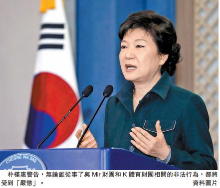 周四,朴槿惠在青瓦台主持召開首席秘書會議時下令對以上指控進行全面調查,并警告稱,無論誰從事了與上述兩家財團相關的非法行為,都將受到「嚴懲」。雖然朴槿惠沒有提及崔順實的名字,但這次表態被外界解讀為朴槿惠釋放了對崔順實進行嚴查的信號。朴槿惠還指出,財團創立宗旨意義重大,但相關爭議卻不斷發酵,甚至出現人身攻擊等過火的情况,企業參與的熱情將被澆滅,以致不再投資,從而對韓流文化推廣和企業進軍海外都會帶來負面影響。