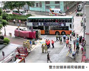 【香港商报网讯】记者冯仁乐报道:长沙湾发生巴士撞翻小巴严重车祸,一辆双层新巴昨晨行经顺宁道与兴华街交界,疑违规没在停车标志前停车,拦腰撞翻一辆途经小巴,乘客「人叠人」呼天抢地,酿成15人受伤,包括两车司机及13名小巴乘客,其中数人重伤。肇事新巴车长事后被警方拘捕;警方将循包括是否有人为错误及超速等方向调查意外原因。