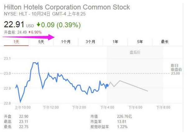 受上述消息提振,希爾頓股價盤前一度大漲近7%。