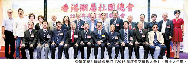 【香港商報网訊】記者謝巧玲報道:香港潮屬社團總會昨日假北角富臨皇宮舉行「2016年度耆英聯歡大會」,中聯辦港島工作部副部長陳旭斌應邀主禮。大會筵開50席,招待65歲以上潮籍長者。現年99歲的創會主席陳偉南現場向12位90歲以上的長者大派利是,其中王樹鑫、張文芳分別為100及103歲。主席陳幼南表示,一年一度的聯歡大會旨在表彰旅港年長鄉親過往為社會作出的貢獻,表達尊老敬賢、構建和諧社會的誠意。