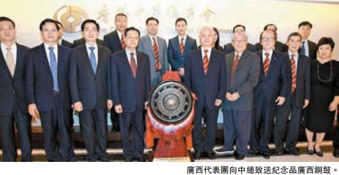中總會長楊釗表示,廣西資源豐富,具有發展潛力,中總幾年前組團訪問廣西,曾考察南寧、北海、防城港等地,印象深刻。隨國家「一帶一路」策略的全面開展,而廣西與越南在陸路、海路均相連,將為香港和廣西兩地企業帶來龐大的發展空間。楊釗認為,香港的優勢在服務業,有資金、人才、網絡等資源,而CEPA服務業先行先試政策去年已延伸至廣西,為香港的服務業界提供先行優勢,加上「一帶一路」的機遇,相信香港可以發揮「超級聯繫人」的角色,加強與廣西在現代服務業方面的合作。