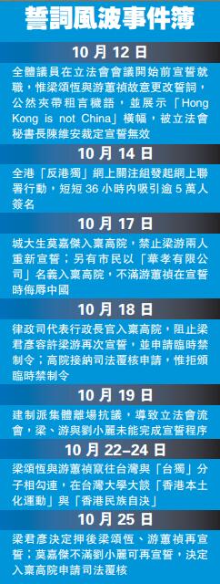 本月18日,他裁定:如梁、游、刘三人向自己提出书面要求,会准许他们在立法会会议上重新宣誓。当日下午,行政长官及律政司司长司法覆核立法会主席没有权力为他们作出宣誓或再次监誓;虽然法院拒绝批出临时禁制令,但就司法覆核申请批给许可。