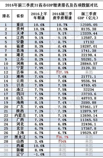 隨著全國前三季度GDP數據的出爐,截止到10月25日,已有25個省市統計局公布了2016前三季度本省的GDP數據,另有吉林、黑龍江、山西3個省份的GDP增速也被網絡媒體陸續公布出來,但當地統計局還未公布官方數據。
