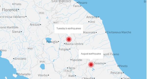 意大利首都羅馬震感強烈,記者可以感到吊燈搖晃、門窗震動。媒體報道說震區一些建筑物倒塌,附近的佩魯賈、安科納都受到地震影響,但目前尚未收到傷亡報告。