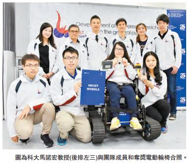 【香港商报网讯】香港科技大学一支本科生队伍参加首届在苏黎世举办的「人机合体奥运会」Cybathlon比赛。在25个国家的66支队伍中,科大击败伦敦帝国学院、香港城市大学等对手,夺得电动轮椅组亚军。科大於26日召开新闻发布会,由参赛队伍亲自示范并分享比赛经历。
