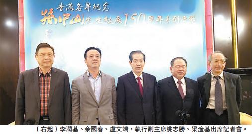 記者會由余國春主持。他指,孫中山先生誕辰150周年系列活動是香港各界今年的盛事,是全國紀念活動的重要組成部分,中央政府非常重視,香港各界人士及海內外華人亦十分關注,冀望各界攜手共同辦好是次活動。