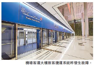 一列載有約80名離港旅客的列車,在一號客運大樓西大堂至中場客運大樓之間故障,約40分鐘后修復,13名旅客未能按時登機。