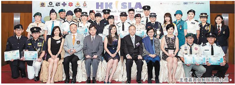 【香港商報網訊】記者米雪爾報道:由「香港青年服務領袖獎」獎勵計劃主辦的第二屆「香港青年服務領袖獎」頒獎典禮日前假香港跑馬地賽馬會會所舉行。大會以「今日的領袖,明日的領袖」為主題,政務司司長林鄭月娥擔任主禮嘉賓,保安局局長黎棟國、教育局局長吳克儉、食物及衛生局局長高永文及民政事務局副局長許曉暉擔任頒獎嘉賓。當晚菁英匯聚,多個香港青年制服團體長官及代表、支持培育青年服務的商業機構及嘉賓到場支持,一同見證和分享得獎者獲獎的喜悅心情。
