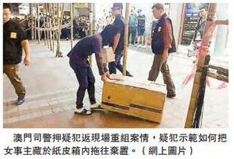 【香港商报网讯】澳门发生恐怖强奸及杀人未遂案,青洲一间饮品店少女店员前晚工作期间,惨遭兽性大发的男同事焗晕後蹂躏,有人饱尝兽慾後竟企图杀人灭口,女事主续被喂食宠物用镇静药及用刀割颈放血,再被藏於纸皮箱拖往附近一个垃圾房「弃屍」。一度心跳停顿的女事主稍後被发现送院抢救,逃离鬼门关,暂时脱离危险期,涉案疑犯昨日被捕後,至傍晚被司警押返现场重组案情。