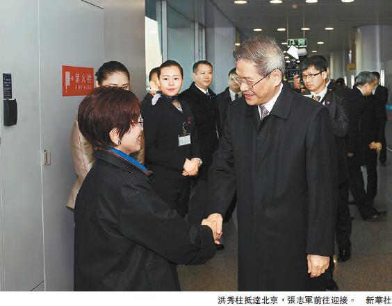 另據報道,洪秀柱一行昨天下午乘機抵達北京首都機場,繼續大陸訪問行程,國台辦主任張志軍前往迎接。洪秀柱表示,北京天氣冷,但心熱就好。按照慣例,國共兩黨領導人將在北京會面。