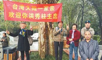 得知洪秀柱當日謁陵的消息,不少南京民眾和游客冒雨前來。見到洪一行,有民眾高呼「柱姐加油」「兩岸民眾一家親」。