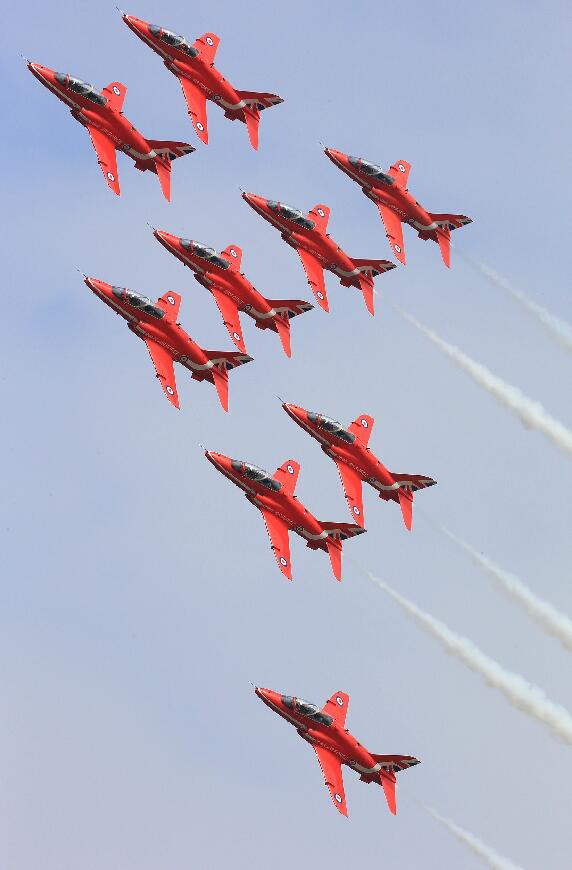 11月1日,参加第十一届中国航展的英国皇家空军“红箭”飞行表演队进行编队飞行。