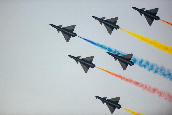 11月1日,参加第十一届中国航展的中国空军八一飞行表演队歼-10战机进行编队飞行。